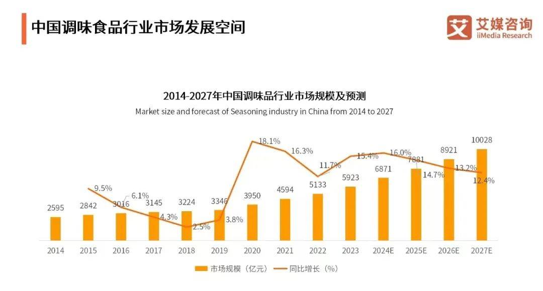 政策与市场的双重压力下,无添加赛道正成为调味品工业增长的新引擎。2024年中国调味品市场规模达6871亿元,其中健康化产品(低盐、零添加)增速约15%,远超行业平均水平。