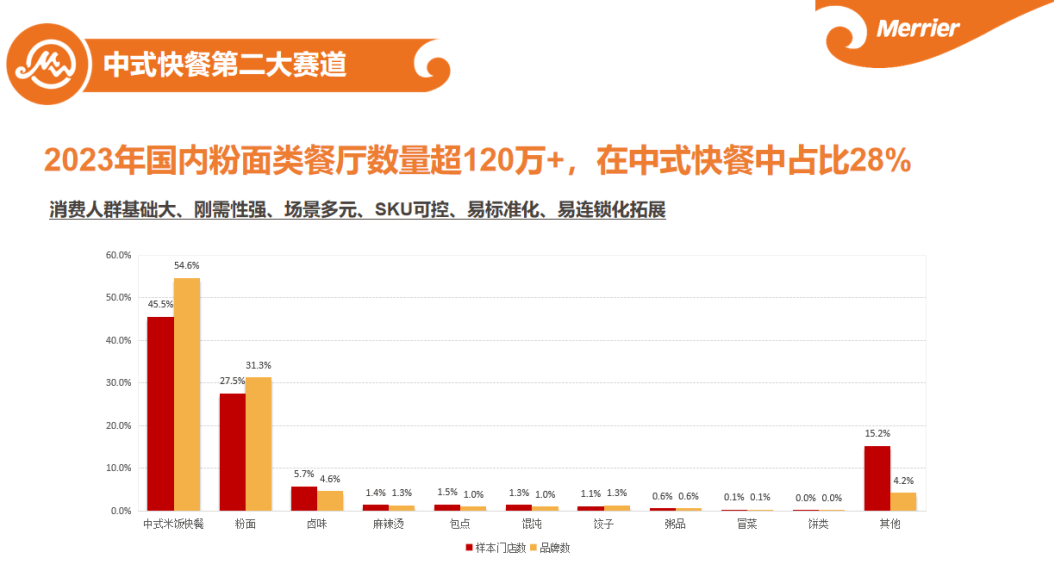 在消费升级与餐饮多元化的浪潮下,粉面市场正经历着深刻变革与蓬勃发展。相关数据显示,2023年国内粉面类餐厅数量超120万+,在中式快餐中占比28%。2024 年,面馆与小吃面食强势闯入 “餐饮品类发展指数” TOP10,“面馆” 更是稳居前三。南粉北面这一地域饮食文化符号,蕴含着巨大的市场潜力与创新空间。