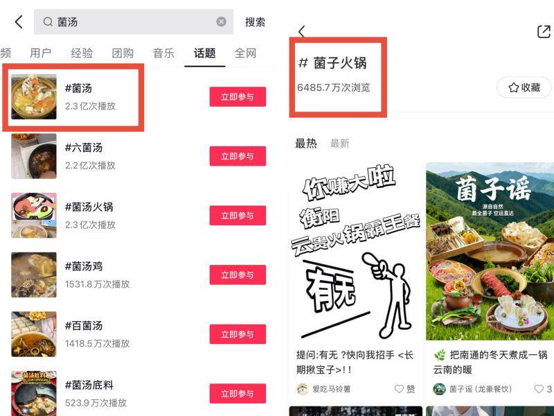 抖音“菌汤”话题播放量超2.3亿次,小红书相关笔记浏览超6000万次,年轻食客主动打卡、自发传播。