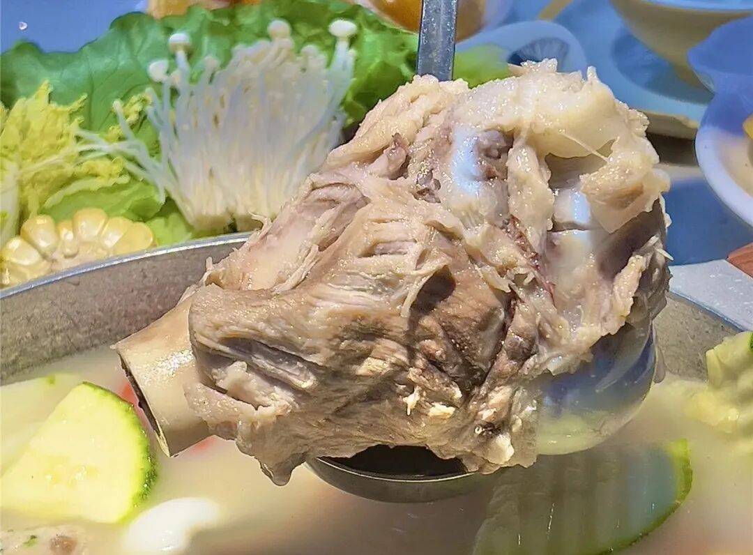 除了汤味出众,骨头本身的品质也让人惊艳。每根骨头大到惊人,分量十足;炖至微酥的大骨,肉筋缠绕,一口咬下骨肉轻松分离,满足感十足。