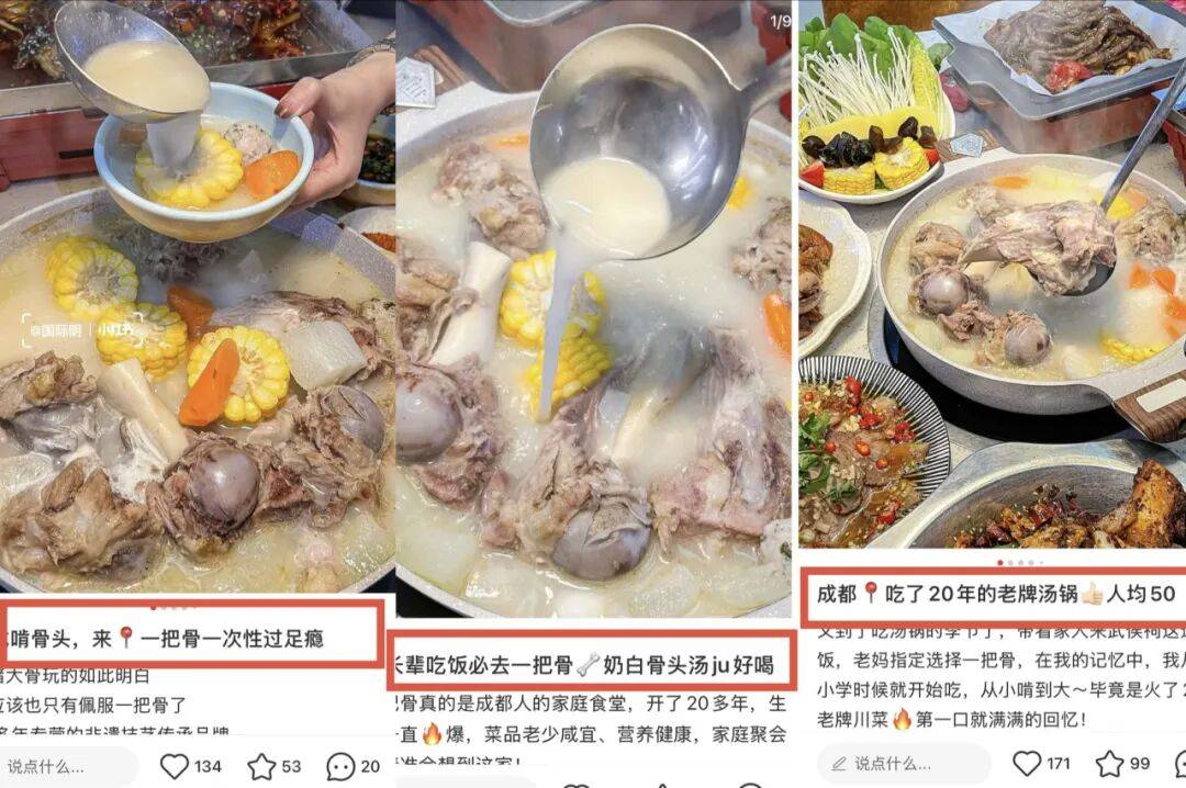 主打先吸髓、再喝汤、后涮菜的消费流程,搭配吸管,让吸髓成为自带传播力的社交爆点。网友自发分享吸完骨髓淋骨汤,泡饭能吃3碗、老人小孩抢着喝汤,精准戳中养生+仪式感双重需求,让单店日均客流提升 40%。