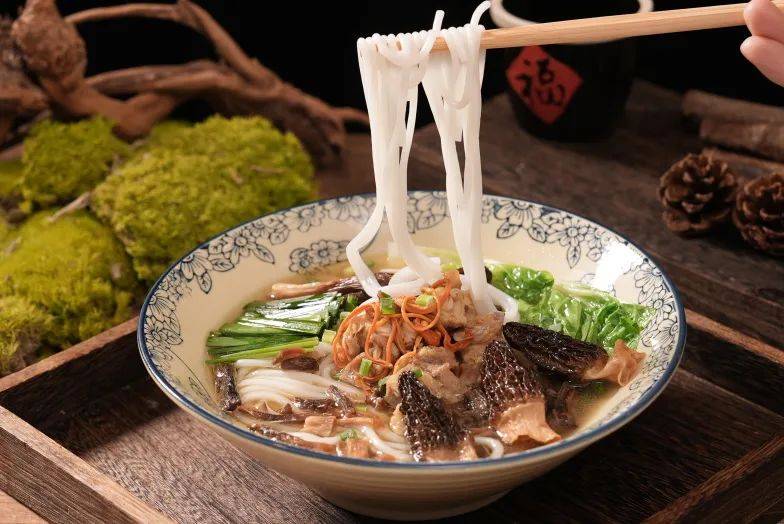 云南山珍米线:浓香鸡汤碰上鲜味菌汤,鲜味双重暴击,搭配菌类、鸡块、米线,适合打造高端养生米线,客单价提升至20元 +,打工族午餐的首选!