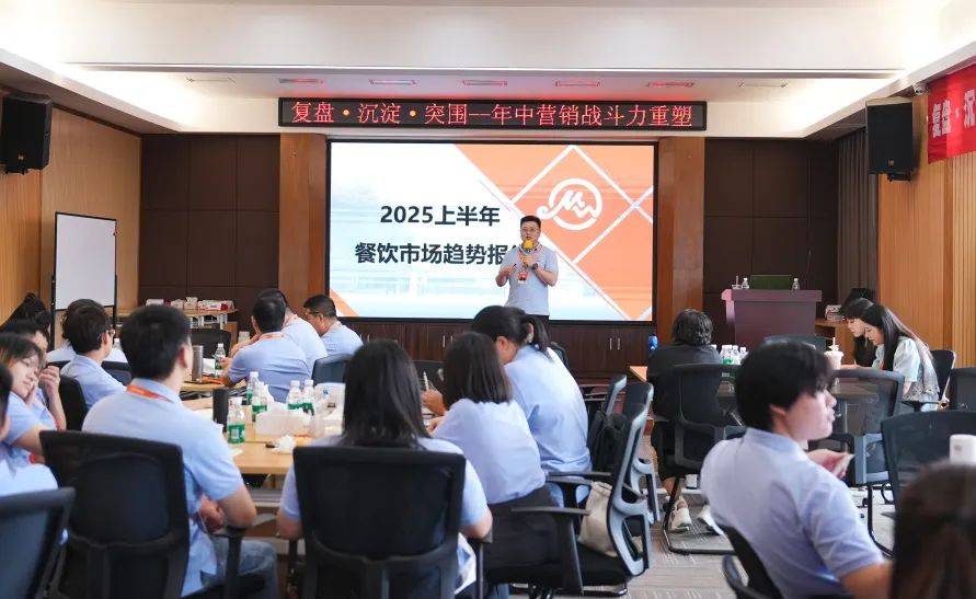 市场部负责人韩笑先生在会议中分享了 2025 上半年餐饮市场趋势报告,基于政策导向与消费数据,深度剖析了存量竞争下餐饮市场呈现的五大核心趋势。同时,针对六大黄金品类,包括快餐粉面、火锅、特色小吃等,进行了细致入微的解析,从品类特色、受众群体到市场潜力,为区域市场开拓提供了极具价值的决策依据。