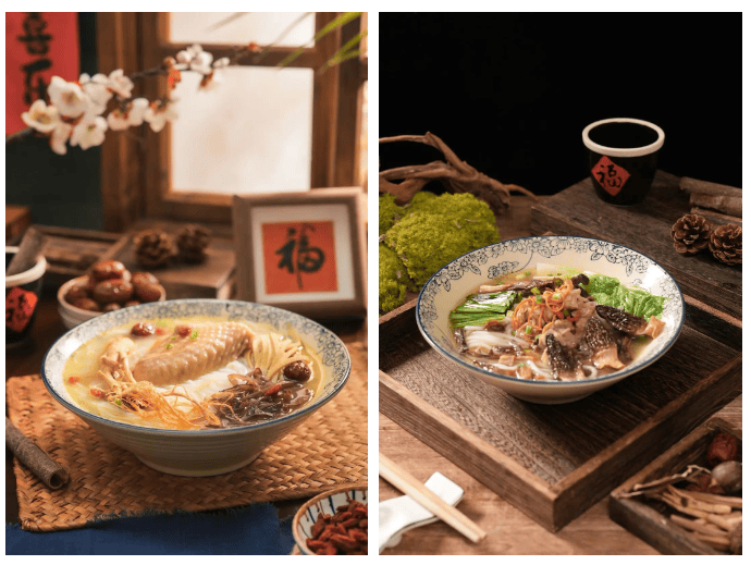 上海营销中心将重点推出秋日食补系列产品,适配近期消费需求,实现低成本高溢价。其中人参鸡汤米线凭借一根人参实现瞬间高溢价,搭配鲜香鸡汤底,精准匹配家庭及中老年客群;云南山珍米线以菌汤料搭配干菌,成本仅 3 元,售价 15 元,毛利率超80%,鲜而不腻的口感契合当下健康消费趋势。