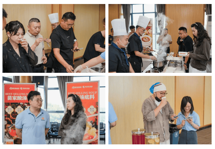 品鉴过程中,买家们不时记录口味特点、询问不同产品的成本核算与起订量,针对能否根据下游客户需求微调口味、小批量订单的供货周期等采购关键问题,四川美味源专业团队逐一细致解答。这种味觉体验 + 专业答疑的组合,为后续合作奠定信心基础。