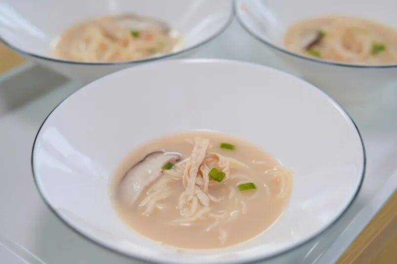 原香鸡汤面:以我佳鸡汤为汤底,加热后仍能保留浓郁鸡油香与原生鲜味,无需现熬即可呈现鲜炖质感。适合注重健康饮食的家庭客群与上班族,单份汤底成本低,毛利率超70%。