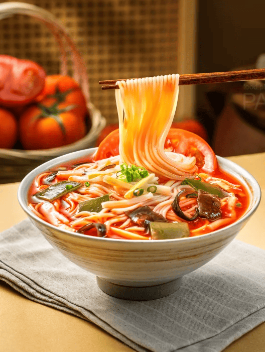 番茄粉面:3 分钟速煮!浓郁番茄浓汤裹满劲道粉面,搭配鲜嫩牛腩,酸甜过瘾超饱腹,快餐翻台王非它莫属!