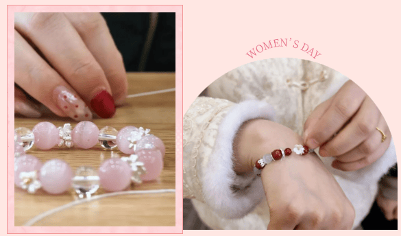 随即开启了一场充满治愈感的能量水晶 DIY 之旅。大家挑选心仪的水晶原石,搭配色彩和谐的串珠,用指尖的温度,将一颗颗蕴含能量的水晶,编织成独属于自己的幸运信物。