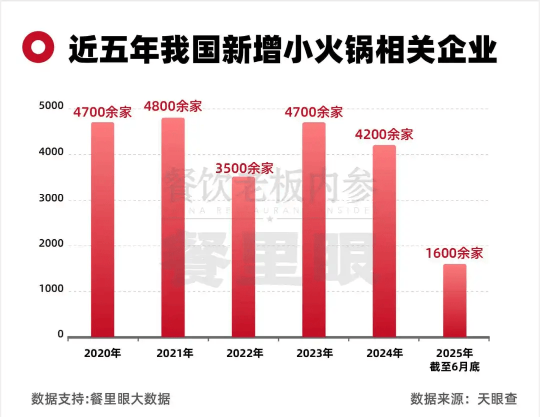 天眼查数据显示,近五年我国新增小火锅相关企业2.3万余家,截至目前,全国小火锅门店数已超5万家。